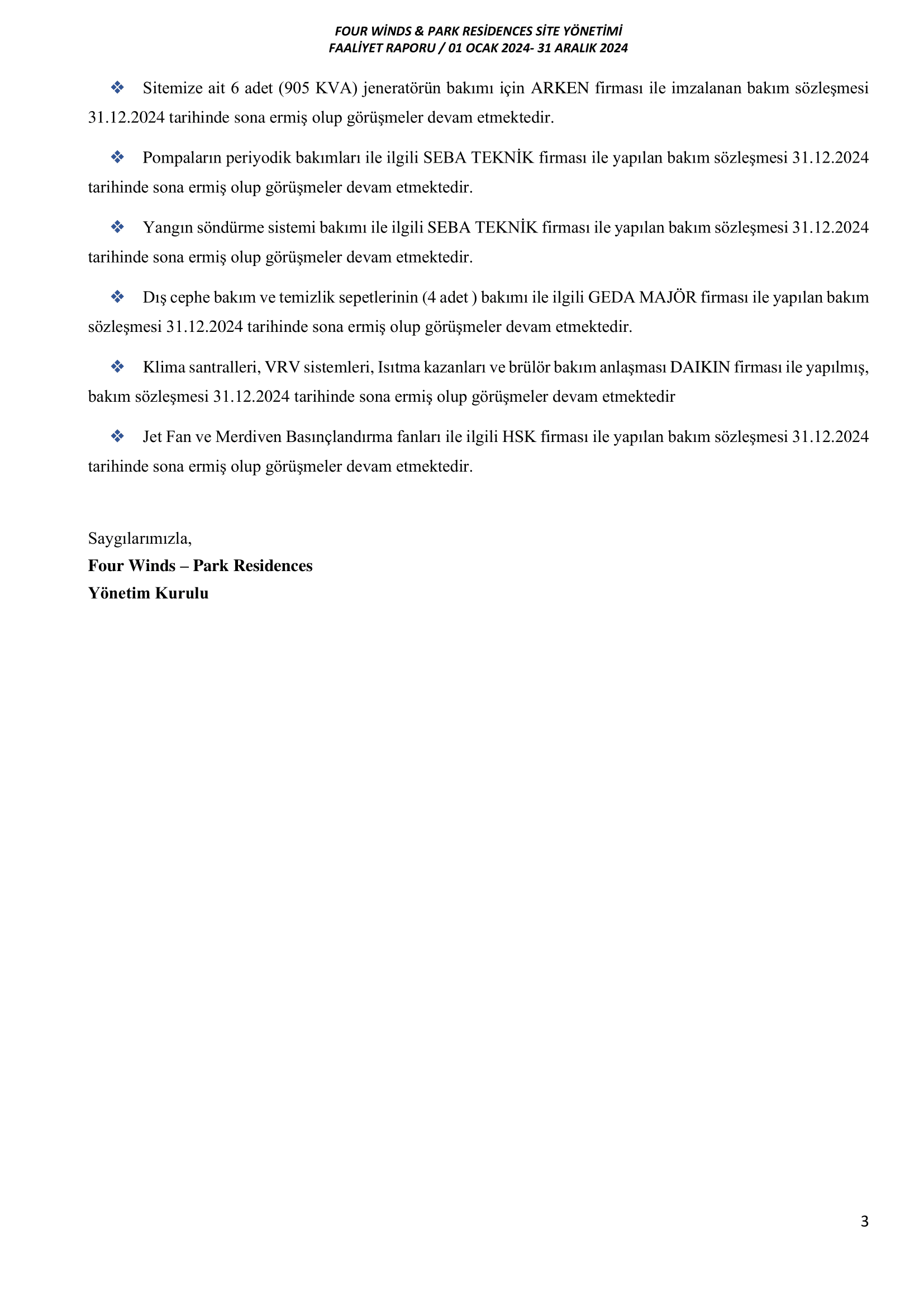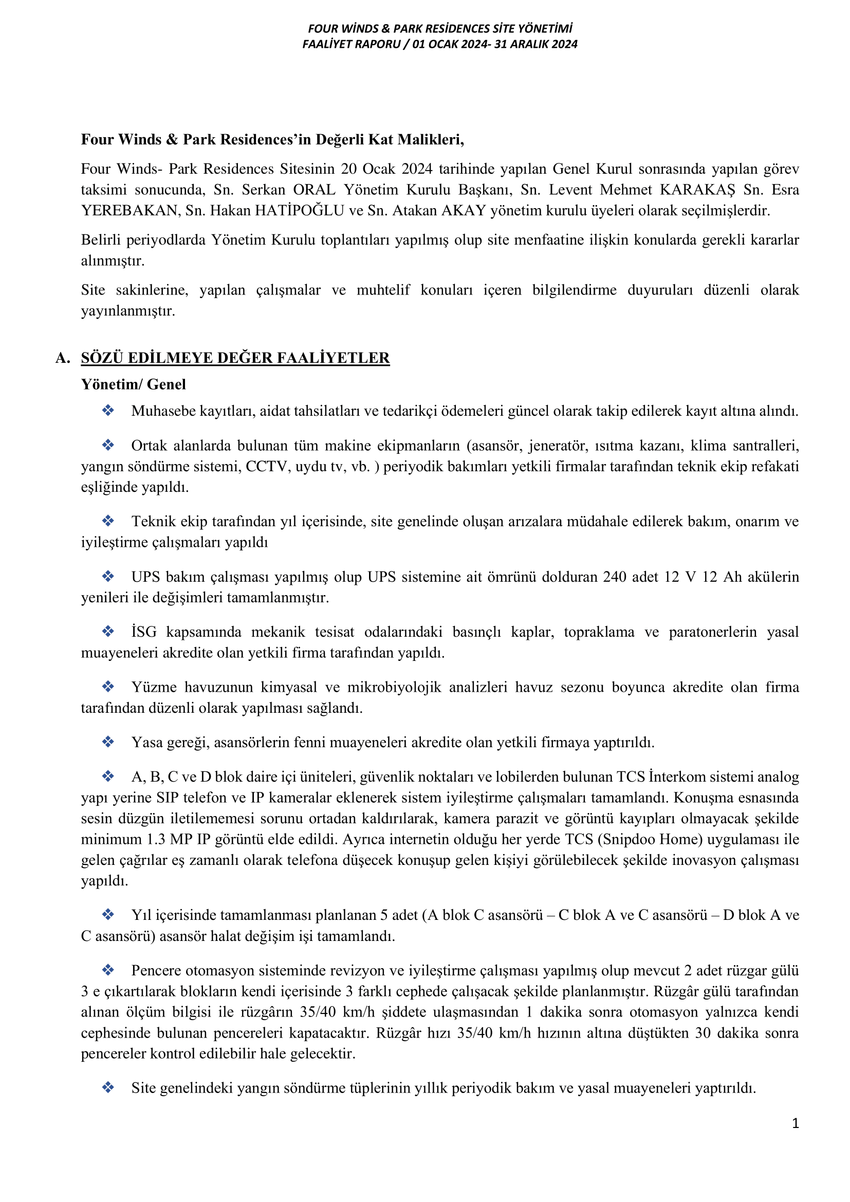 FOURWINDS-PARK RESIDENCES YÖNETİMİ